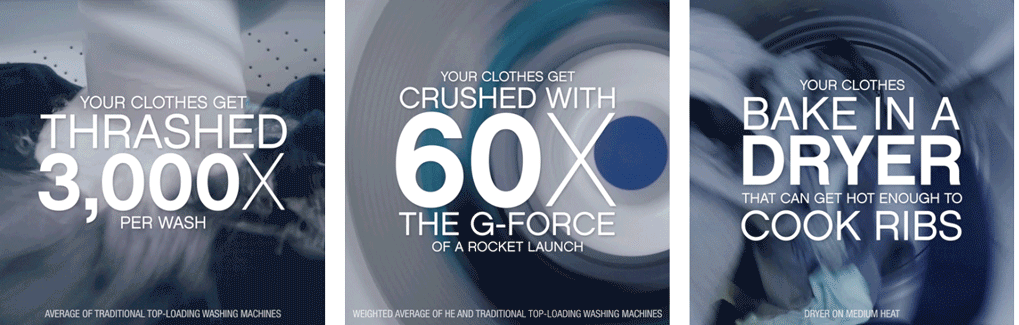 We showed those that just tossed laundry in, closed the lid, and forgot about it what goes on inside. With a washer that spins at 90 RPM and a dryer hot enough to cook ribs, we proved to consumers that their favorite sweater deserves more protection against a bevy of elements that batter every load they wash. We accomplished this by utilizing something typically reserved for extreme sports: a GoPro. In a washing machine.