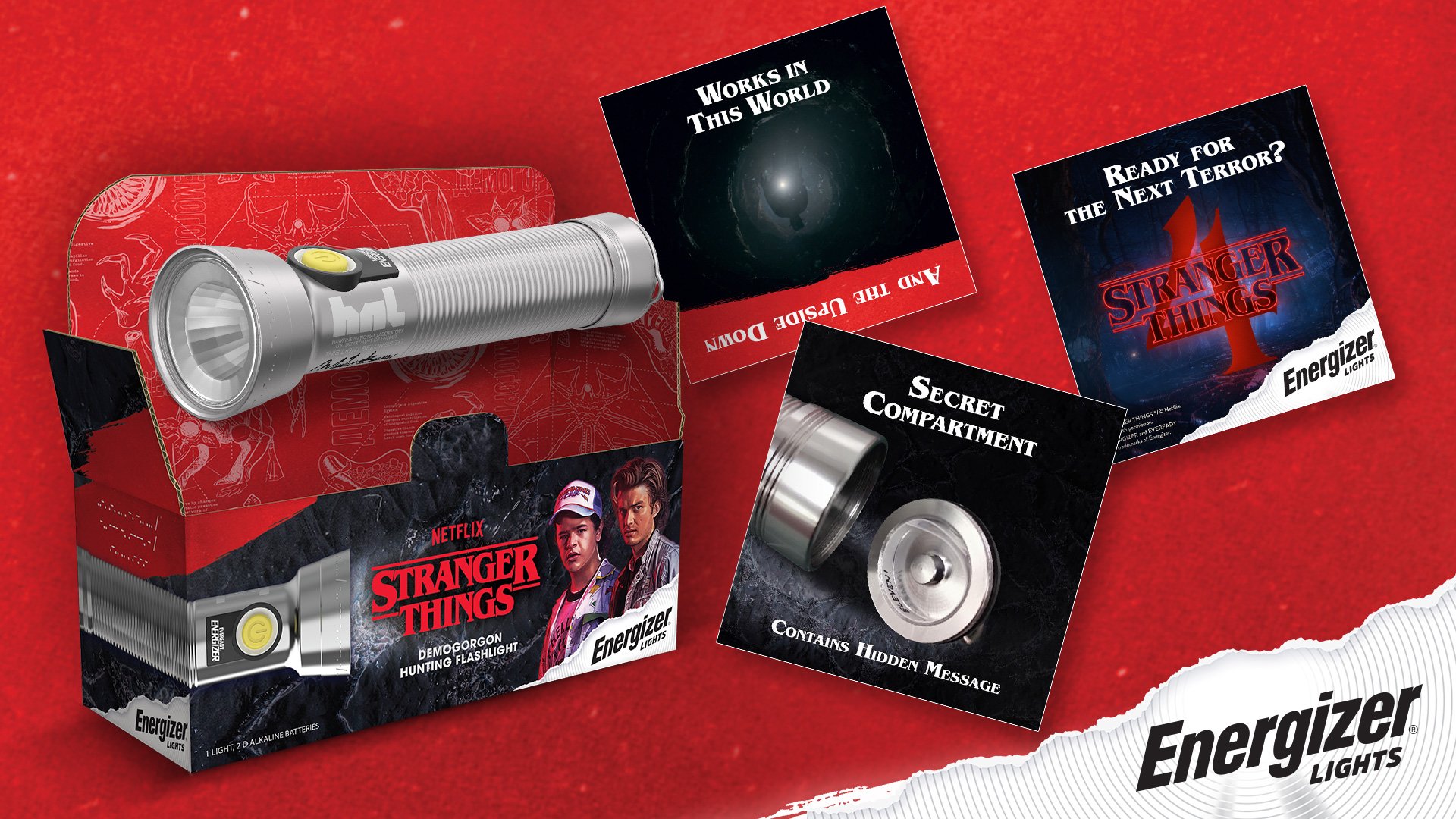To engage fans of Stranger Things Season 4, Energizer launched a Demogorgon hunting flashlight. This throwback to the 1980s flashlight featured extra design touches with nods to the show.