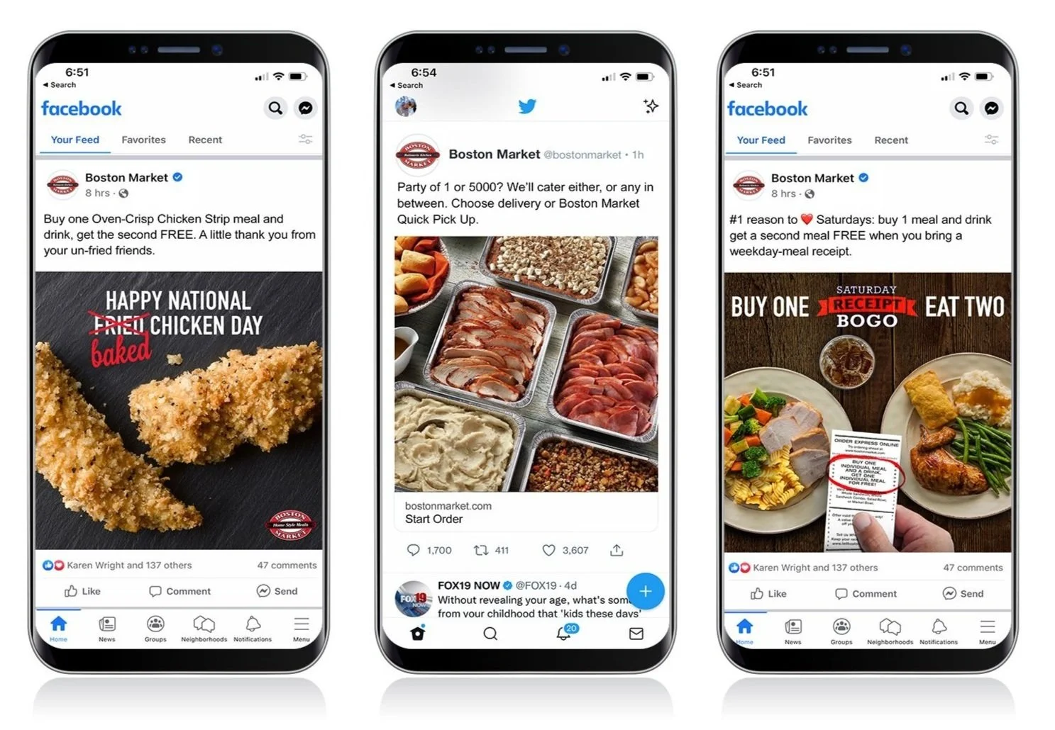 Whether customers were looking for better and affordable meal solutions for their family, office catering, or lunch break, we wanted to ensure Boston Market rose to the top among fast-casual dining options. We planned a social, email, display, and website editorial calendar that would ensure relevant mouth-watering visuals and messaging are served during key meal decision times. Based on performance and A/B tests we optimized channels.